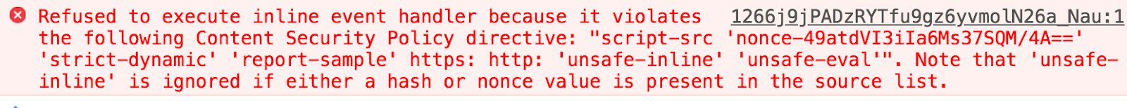 element. Then, when “SHARE” button is pressed, the script would get inserted into the DOM tree by Polymer. Polymer is trusted, hence, per ‘strict-dynamic’, the new script tag is also trusted.